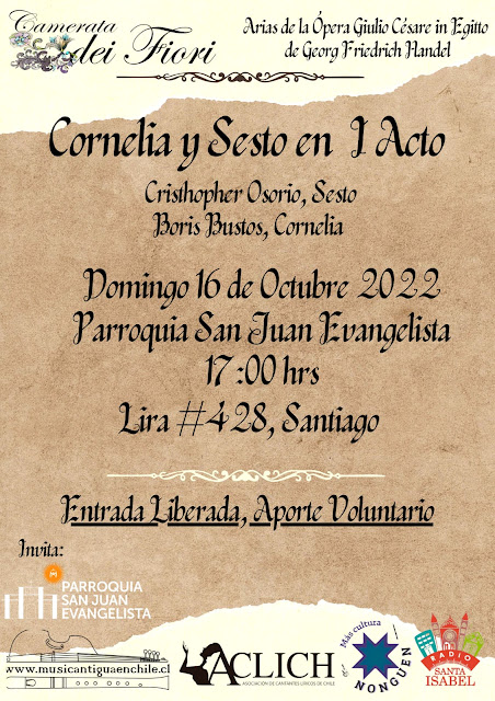 La Camerata dei Fiori en esta oportunidad les presenta un programa titulado “Cornelia y Sesto en I acto”, con arias de la ópera Giulio Césare in Egitto.